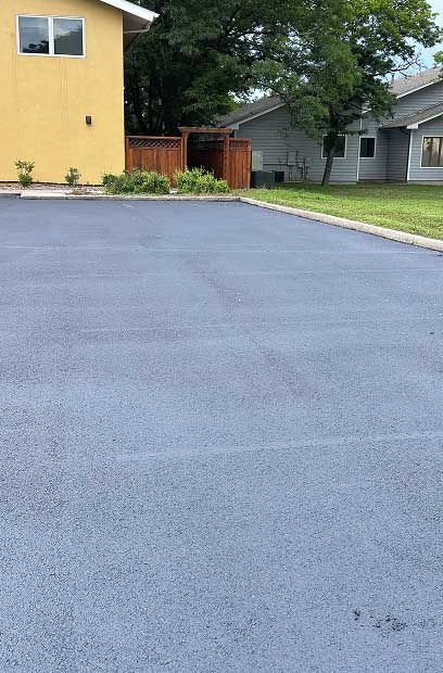 Sealcoating protects the binder in your asphalt from degrading over time—otherwise, your asphalt will turn dry and brittle, cracking and breaking over the years as usage, sun, snow, snowplows, and rain wear it down.